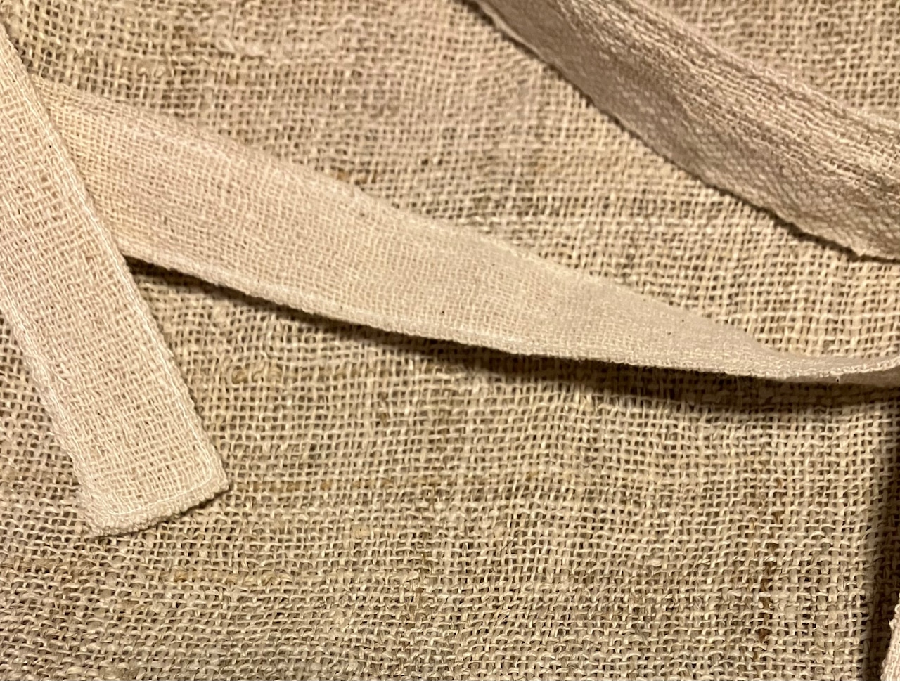 ひもに使われている手織り布は、「お互いの良さを引き出す割合」のヘンプ55%オーガニックコットン45%の混紡率で、昔ながらの機織り機で織られているものです。