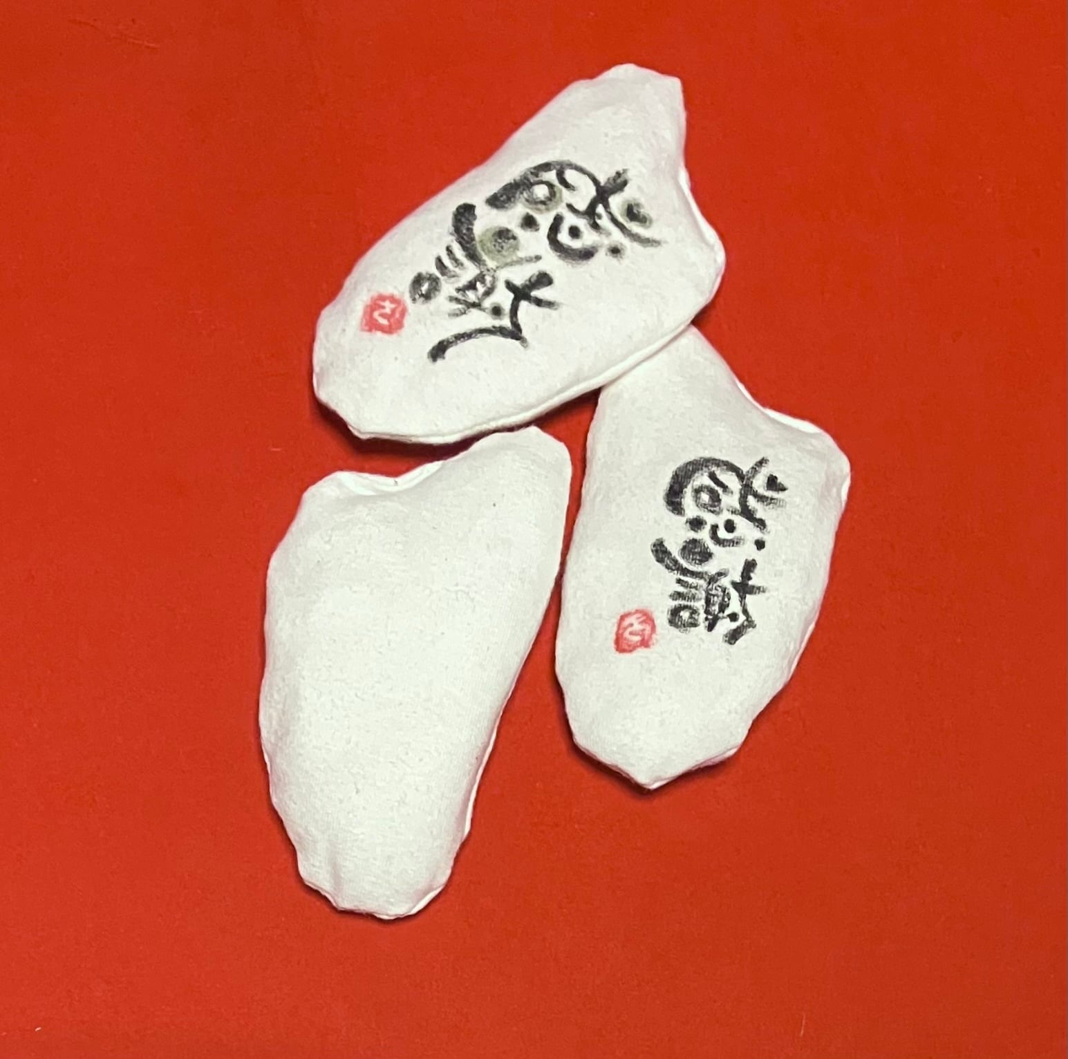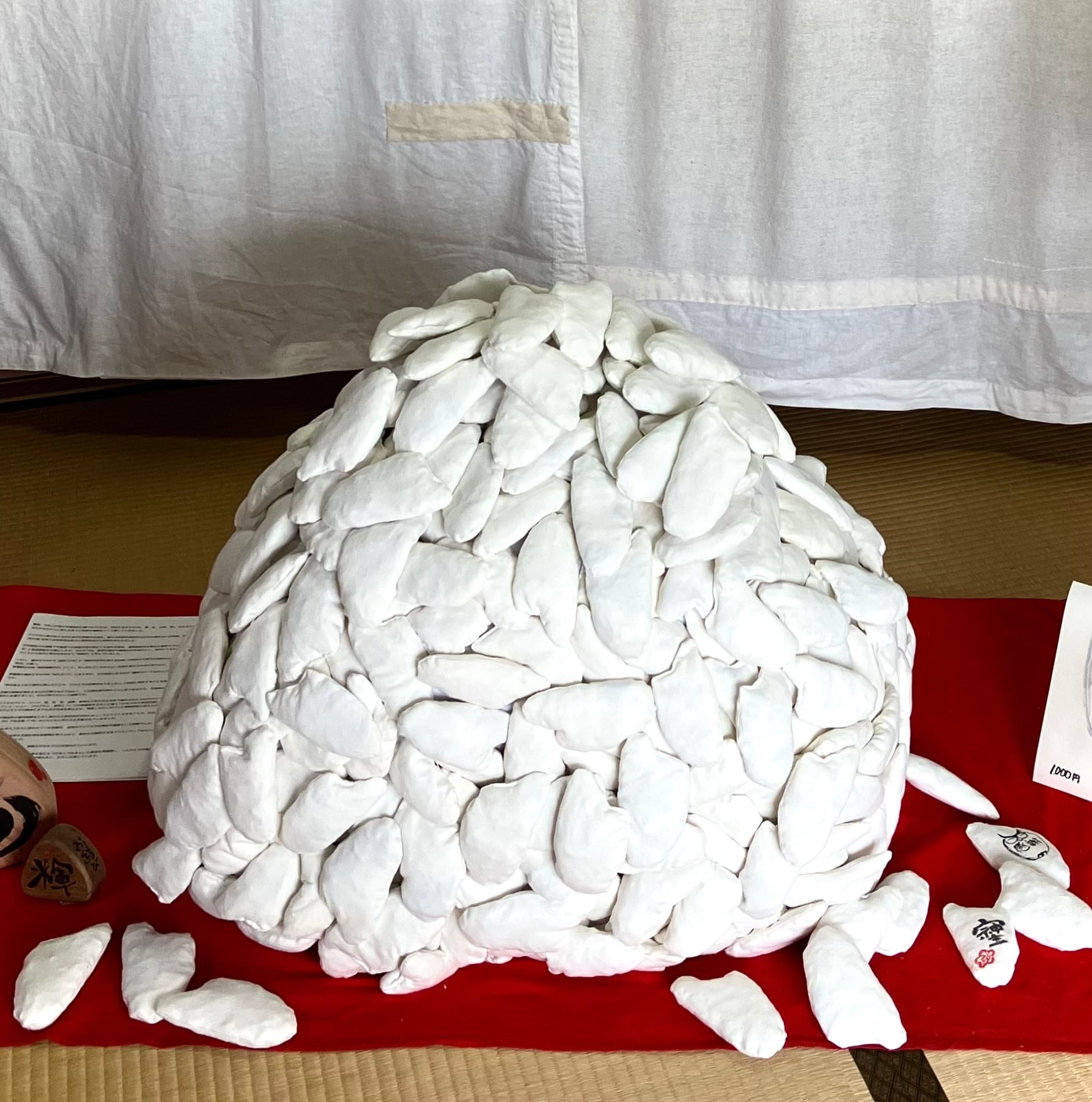 クレス・オルデンバーグ氏に憧れ、新嘗祭をタイトルにしたソフトスカルプチャー作品として、たくさんぬい繋げておむすびを作りました。