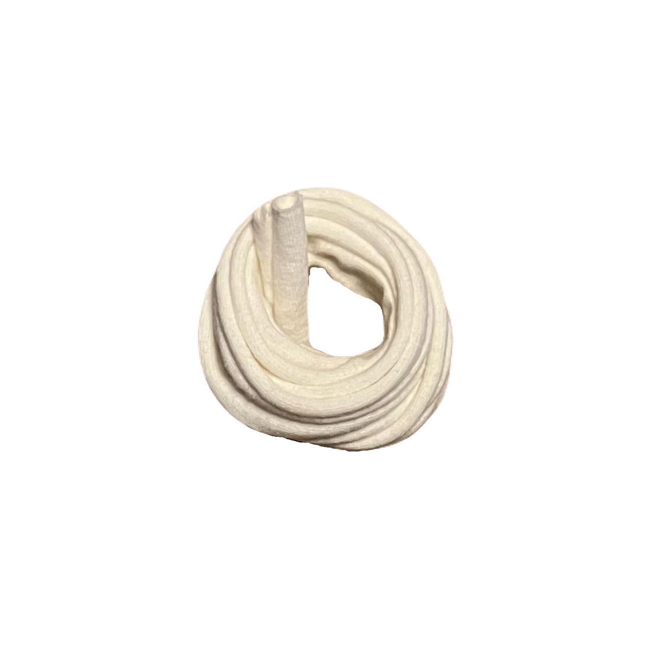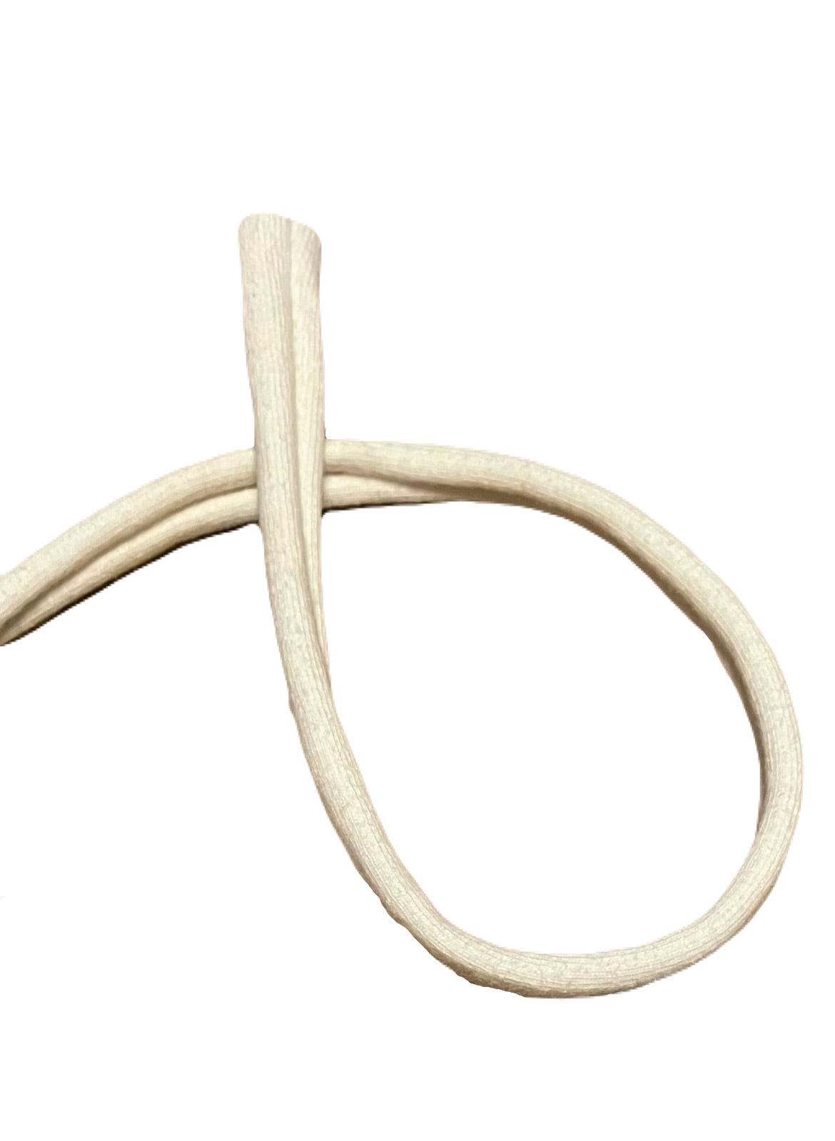 ヘンプとオーガニックコットンに、縦横の伸縮をより快適にするライクラ素材が混紡された、スムーズでしなやかな使い心地が特徴のひもです。