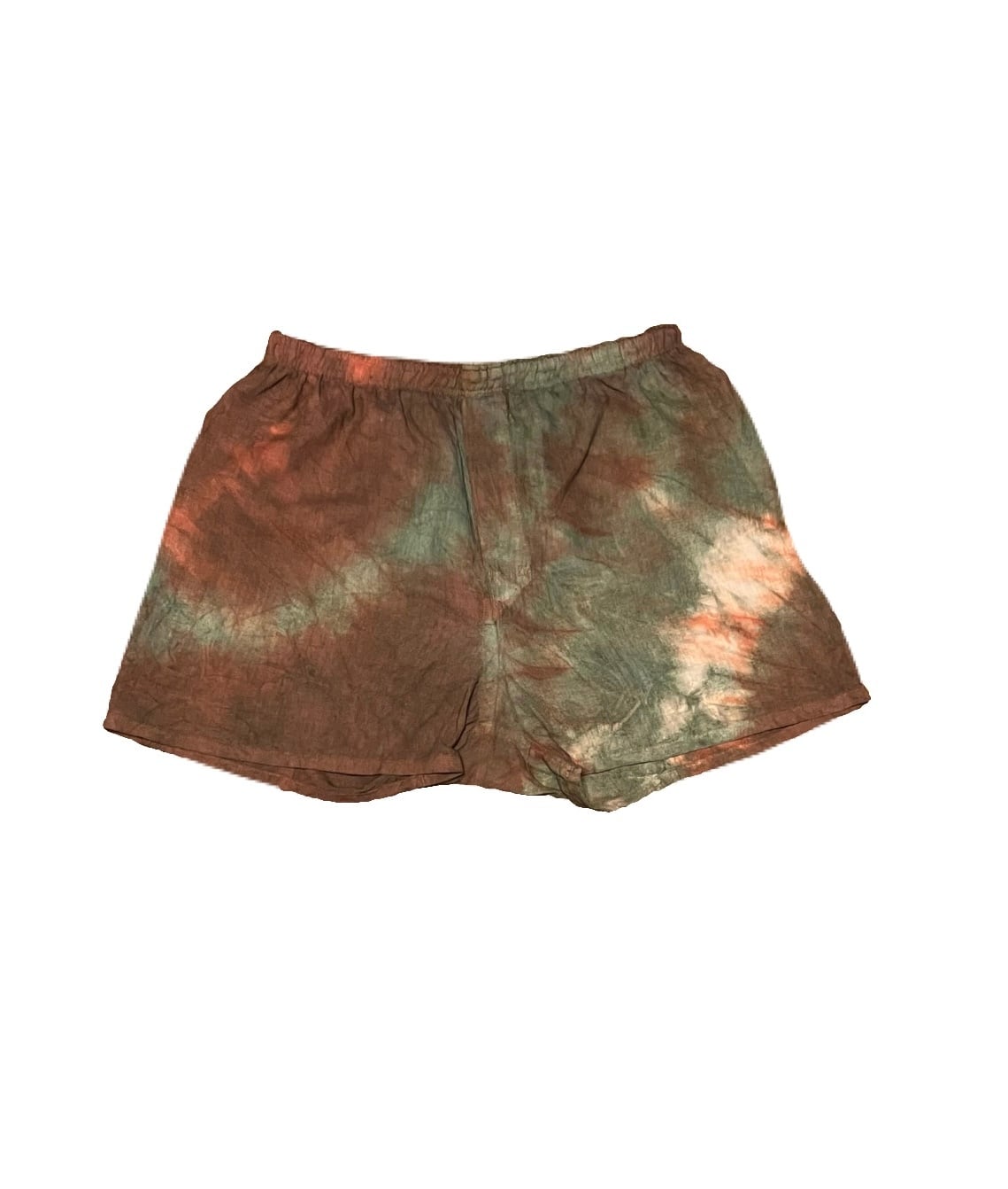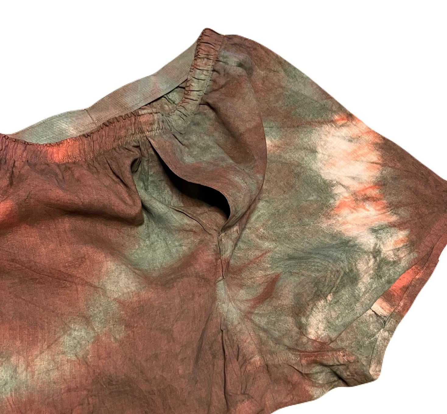 麻炭染め、藍の生葉の藍錠染め、茜染めを何度も重ねた自然の薬効と、ヘンプ100%のグッドバイブレーションを身近に感じられるトランクスです。