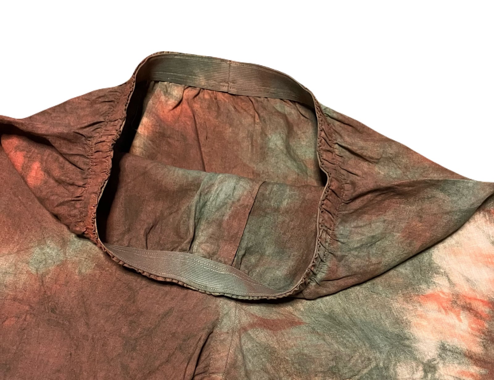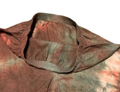 藍錠染めは、藍の生葉と土から出来たベンガラの顔料を混ぜた染料です。身につけることによるグラウンディング、麻炭染めによるアーシングの効果、また、藍染めの特長である防虫効果も期待できます。