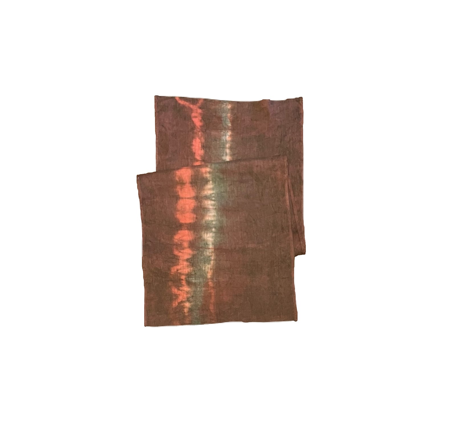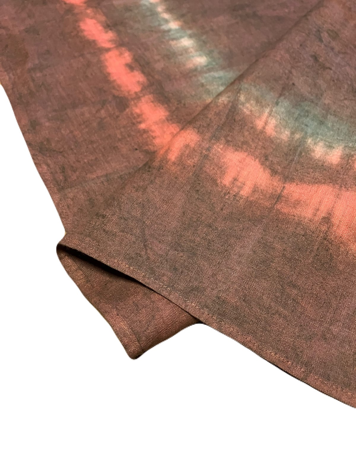 茜、ベンガラ、藍錠と三種の色を使って、独自の手法で重ね染めをした存在感のある美しいヘンプ100%の手ぬぐいです。