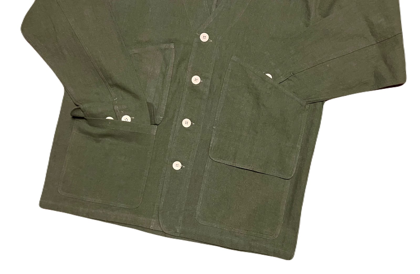 ヘンプxオーガニックコットンの肌触り抜群のやわらかさで着心地最高。生地感の風合いも色合いも素敵なジャケットです。